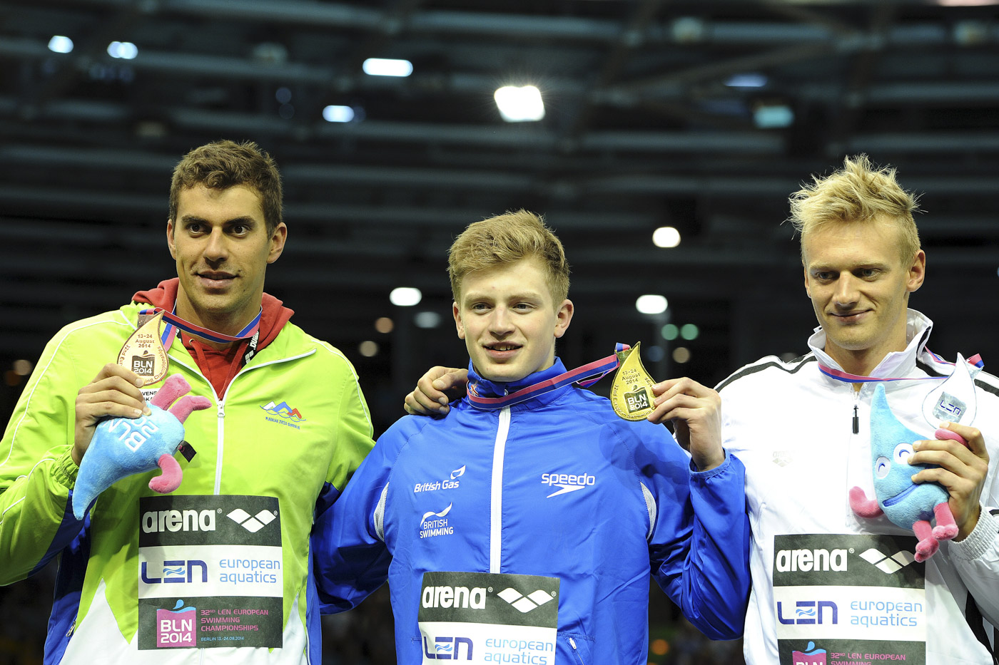 Damir Dugonjic Slovenia Bronze, Adam Peaty GBR Gold Medal, Giedrius Titenis Lituania Bronze Medal 50m Breaststroke Men