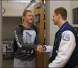 After learning that conference officials last week rejected the appeal of Monroe on behalf of Fortels, who was disqualified for wearing his Peddie Aquatics club team swim cap that did not give him a competitive advantage, Spark, who was awarded first place during the Jan. 29 meet, went to Monroe High School on Monday to present Fortels with his championship medal.