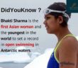 Bhakti Sharma is an Indian Open water swimmer. Sharma is the first Asian woman and the youngest in the world to set a record in open swimming in Antarctic waters. Sharma swam 1.4 miles in 41.14 minutes, at a temperature of 1 °C, breaking the record of Lynne Cox and Lewis Pugh.