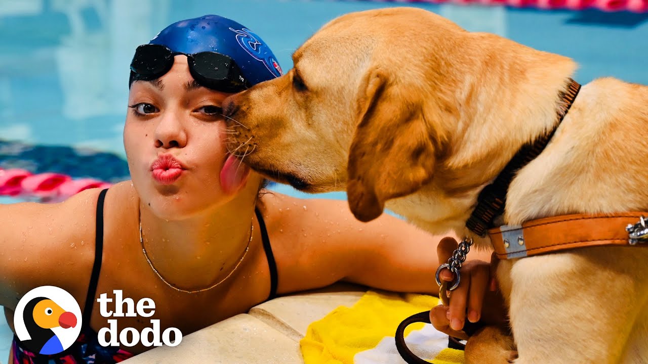 Anastasia Pagonis’ Loyal Guide Dog Sits Next To Swimming Pool During Practice | The Dodo Teammates | The Dodo